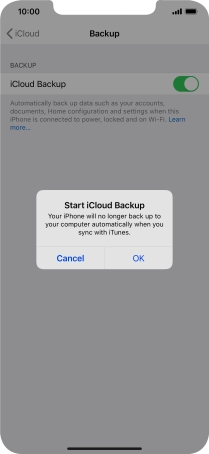 Press the indicator next to "iCloud Backup" to turn on the function.