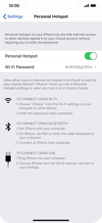 Press the indicator next to "Personal Hotspot" to turn on the function.