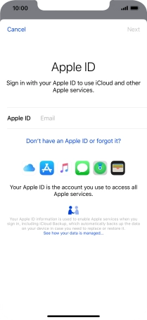 If you don t have an Apple ID, press Don't have an Apple ID or forgot it? and follow the instructions on the screen to create an Apple ID.