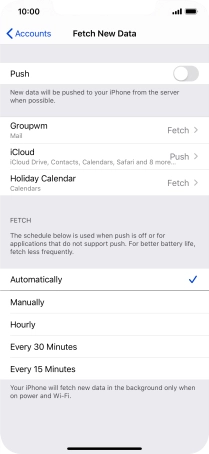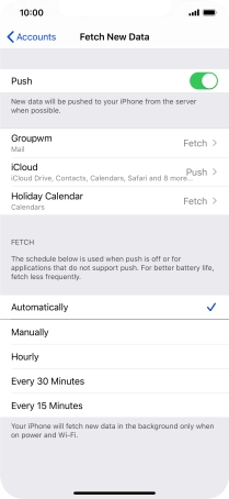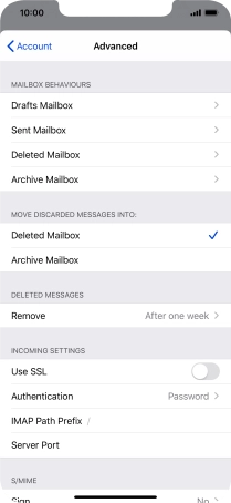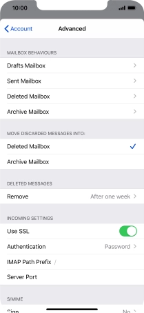 Press the required email account and follow the instructions on the screen to select settings for the specific account.