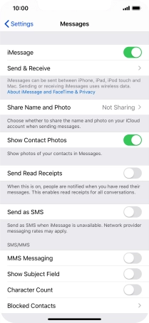 Press the indicator next to "iMessage" to turn on the function.