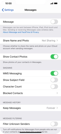 Press the indicator next to "MMS Messaging" to turn on the function.