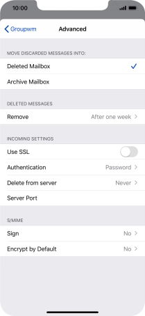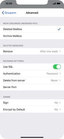 Press the required email account and follow the instructions on the screen to select settings for the specific account.