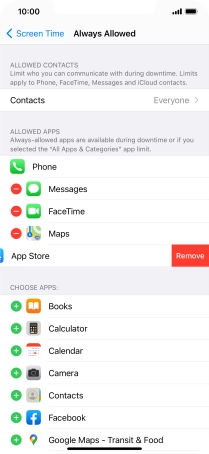 Press the remove icon next to the required app to remove it from the list of allowed apps during Downtime.