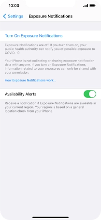 To turn on Exposure Notifications again, open the exposure app and follow the instructions on the screen to turn on the function.