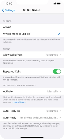 Press the required setting to select which contacts can call you even though Do Not Disturb is turned on.