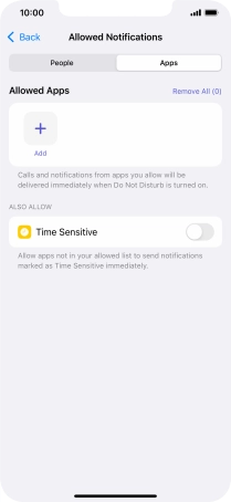 Press Apps and follow the instructions on the screen to select which apps you would like to receive notifications from when Do Not Disturb is turned on.