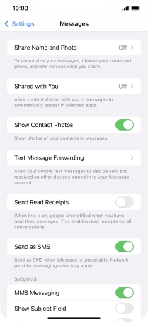 Press the indicator next to "MMS Messaging" to turn on the function.