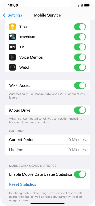 Press the indicator next to "Wi-Fi Assist" to turn the function on or off.