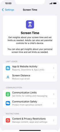 Press Screen Time and optionally select the required member of your family group.