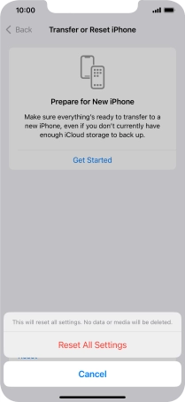 Press Reset All Settings. Wait a moment while the factory default settings are restored. Follow the instructions on the screen to set up your phone and prepare it for use.