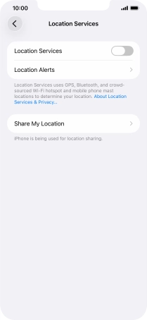 Press the indicator next to "Location Services" to turn the function on or off.