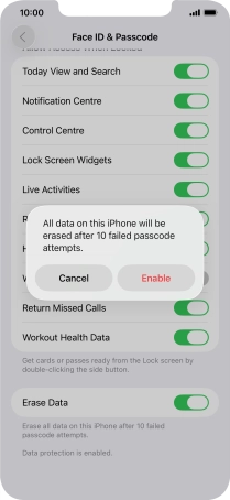 Press the indicator next to "Erase Data" to turn the function on or off.