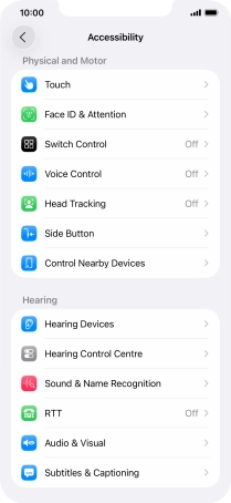 Press the required category below "Hearing" and follow the instructions on the screen to select the required settings.