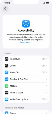 It is possible to select more accessibility settings, you can, e.g., turn the accessibility shortcut on or off, set up Guided Access and set up accessibility functions for certain apps.
