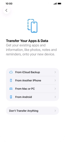 Follow the instructions on the screen and in the "Move to iOS" app to transfer the content from the Android phone to your phone and set up your phone and prepare it for use.