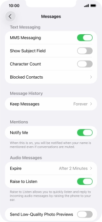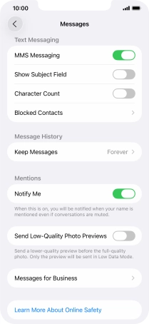 Press the indicator next to "MMS Messaging" to turn on the function.