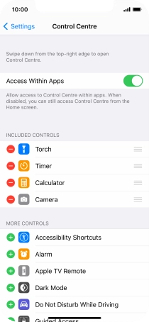 Select settings for Control Centre on your Apple iPhone 12 iOS 14.1