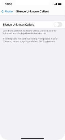Press the indicator next to "Silence Unknown Callers" to turn on the function.
