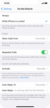 7. Select settings for Do Not Disturb While Driving