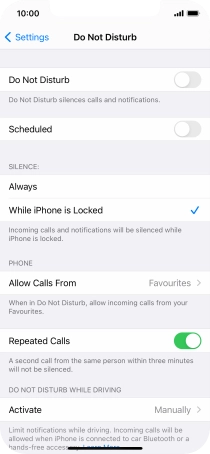 Press the required setting to select which contacts can call you even though Do Not Disturb is turned on.
