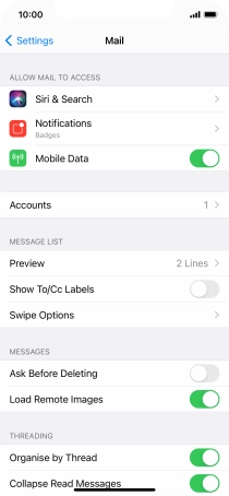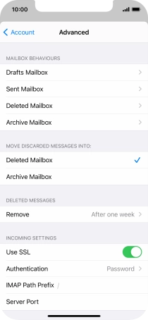 Press the required email account and follow the instructions on the screen to select settings for the specific account.
