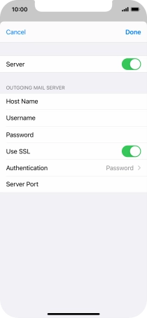 Press Password and key in the password for your email account. Please note that if you're using Vodafone's outgoing server, leave the password field empty.