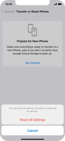 Press Reset All Settings. Wait a moment while the factory default settings are restored. Follow the instructions on the screen to set up your phone and prepare it for use.