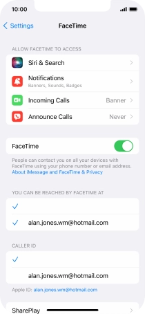 Press the required setting below "YOU CAN BE REACHED BY FACETIME AT".