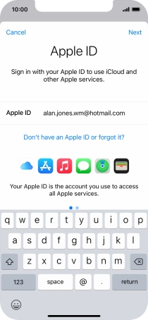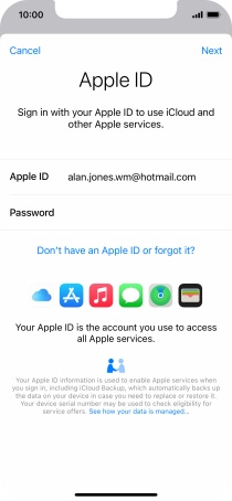 If you don t have an Apple ID, press Don't have an Apple ID or forgot it? and follow the instructions on the screen to create an Apple ID.