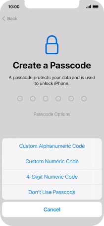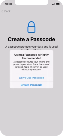 Follow the instructions on the screen to turn on use of phone lock code or press Don't Use Passcode.