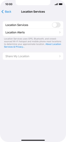 Press the indicator next to "Location Services" to turn the function on or off.