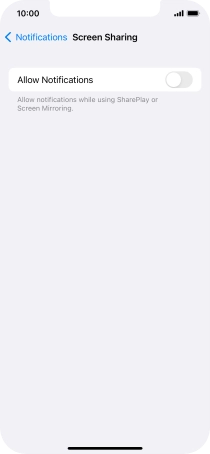 You can turn display of notifications when using SharePlay or Screen Mirroring on or off.