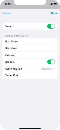 Press Password and key in the password for your email account. Please note that if you're using Vodafone's outgoing server, leave the password field empty.