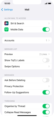 Press the required email account and follow the instructions on the screen to select settings for the specific account.