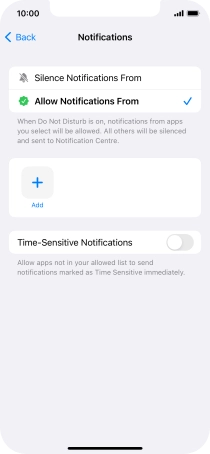 Press the indicator next to "Time-Sensitive Notifications" to turn display of timed notifications on or off when Do Not Disturb is turned on.
