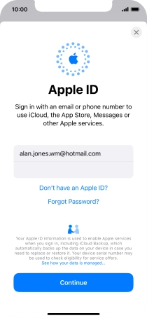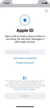 If you don t have an Apple ID, press Don't have an Apple ID? and follow the instructions on the screen to create an Apple ID.
