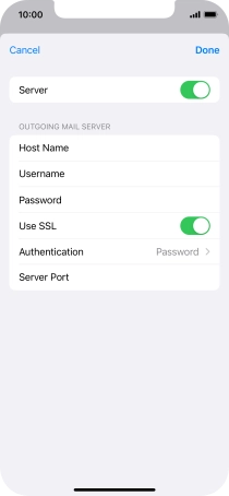 Press Password and key in the password for your email account. Please note that if you're using Vodafone's outgoing server, leave the password field empty.