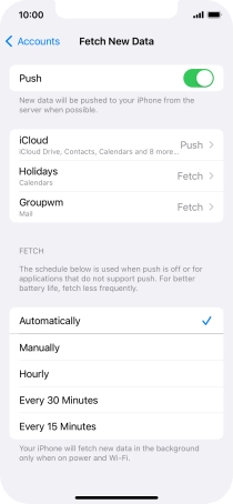 Press the required email account and follow the instructions on the screen to select settings for the specific account.