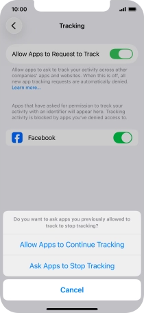 Press the indicator next to "Allow Apps to Request to Track" to turn the function on or off.