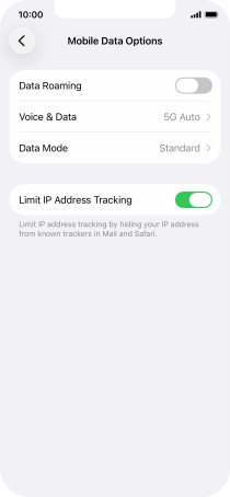 Press the indicator next to "Data Roaming" to turn the function on or off.