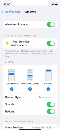 Press the indicator next to "Time-Sensitive Notifications" to turn the function on or off.