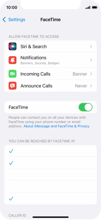 Press the required setting below "YOU CAN BE REACHED BY FACETIME AT".