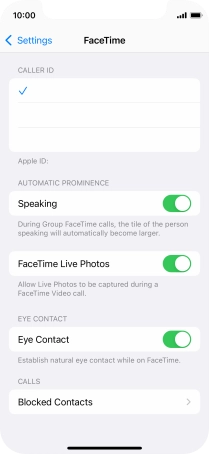Press the indicator next to "FaceTime" to turn the function on or off.