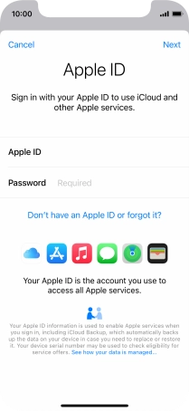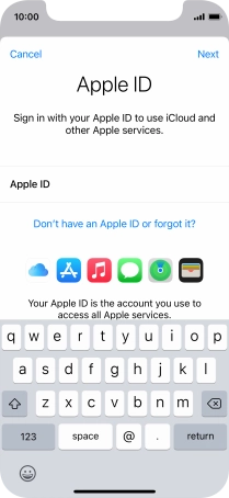If you don t have an Apple ID, press Don't have an Apple ID or forgot it? and follow the instructions on the screen to create an Apple ID.