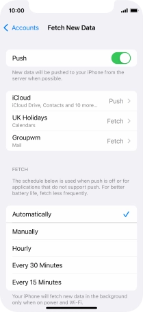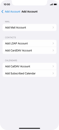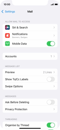Press the required email account and follow the instructions on the screen to select settings for the specific account.
