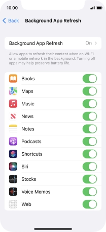 To turn off background refresh of apps, press Off.