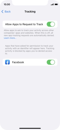 Press the indicator next to "Allow Apps to Request to Track" to turn the function on or off.