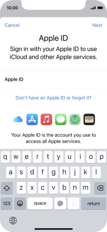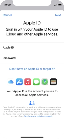 If you don t have an Apple ID, press Don't have an Apple ID or forgot it? and follow the instructions on the screen to create an Apple ID.