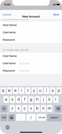 Press Host Name and key in the name or IP address of your email provider's outgoing server. Please note that if you can't send email messages when using your email provider's outgoing server, key in smtp.vodafone.net.au (Vodafone's outgoing server).